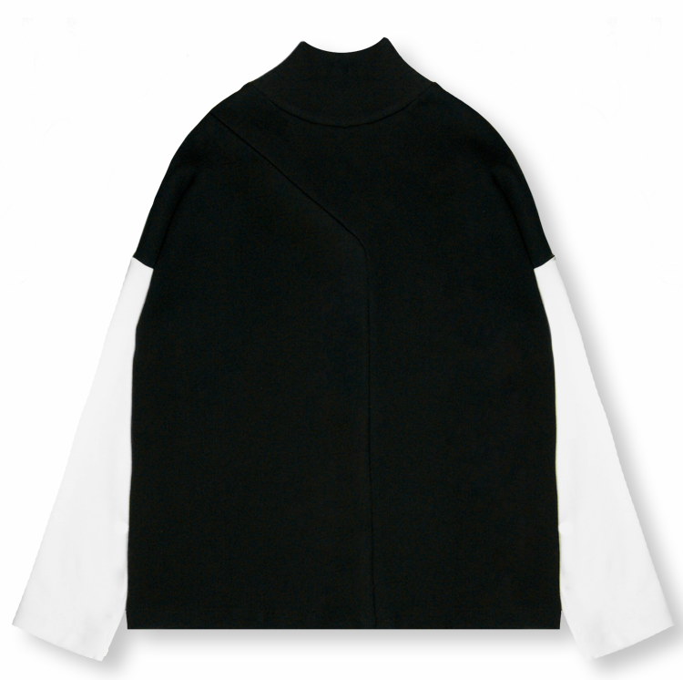 - The jumper has a turtle neck and colour blocking detail for a more designed approach to loungewear.